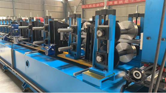 Our C/Z purlin machine driven by gearboxes, consists of decoiler, feeding and levelling device, punching system, pre-shear, roll forming system, hydraulic post cutting, run out table, hydraulic station and PLC(controlling system). Its special feature: Assemble with liner guide way to make machine change web size easily and smoothly, Produce standard products with yield strength up to 550Mpa,Long production line,no open mouth on final products, C/Z interchange only with 3 steps and within 5-15mins;Changing size fully automatically. Time saving and labor saving, which is highly improved production efficiency and suitable for current production. This machine is easy to operate and run stable with good precision. Large range web size is 120-450mm and thickness up to 4.5mm, which used widely and would be the most popular model in the near future.