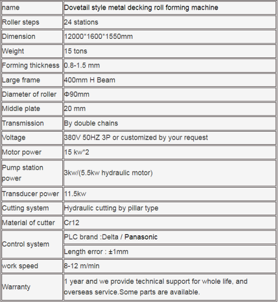 The following are more details of Dovetail Deck rolling forming machine for your reference: